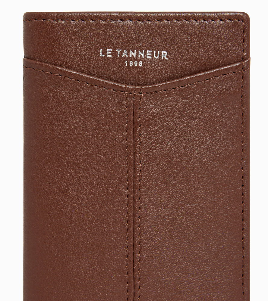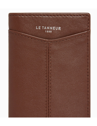 Portecartes vertical avec deux poches plates et six compartiments cartes intérieurs. Doublure Le Bleu signature et marquage Le tanneur sur film argent. Dispose d'une sécurité antiRFID.