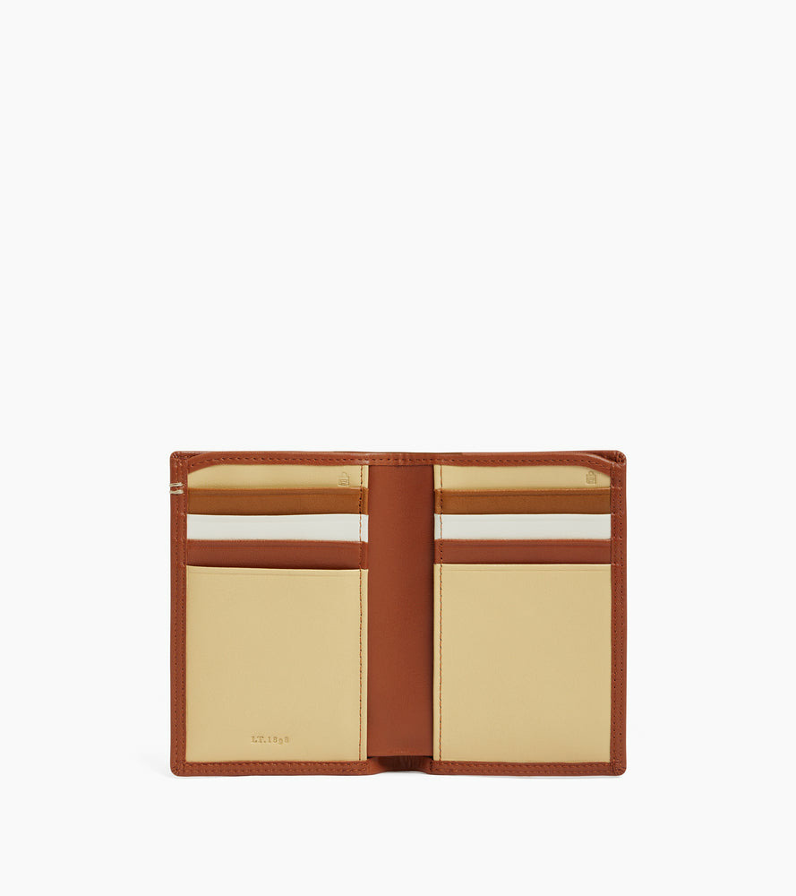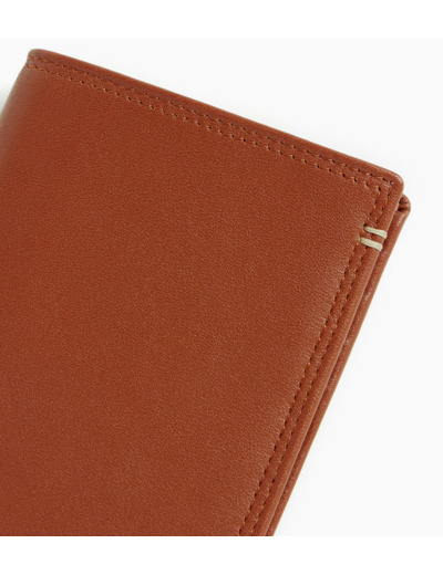 Portefeuille grand format vertical avec marquage Le Tanneur ton sur ton et double point contrasté cousu à la main. Dispose d'une sécurité anti-RFID.