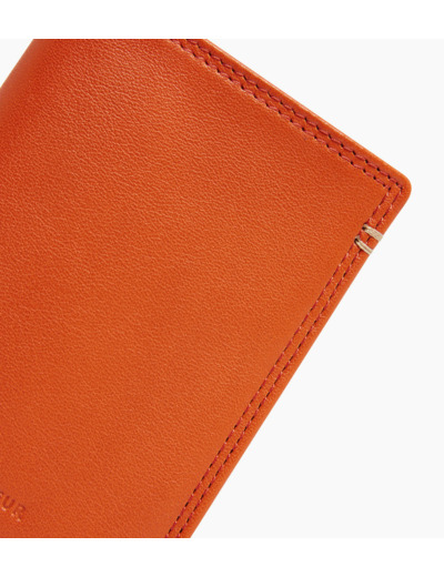 Portefeuille grand format vertical avec marquage Le Tanneur sur film Le Bleu, signature de la Maison. Double point contrasté cousu à la main. Dispose d'une sécurité antiRFID.