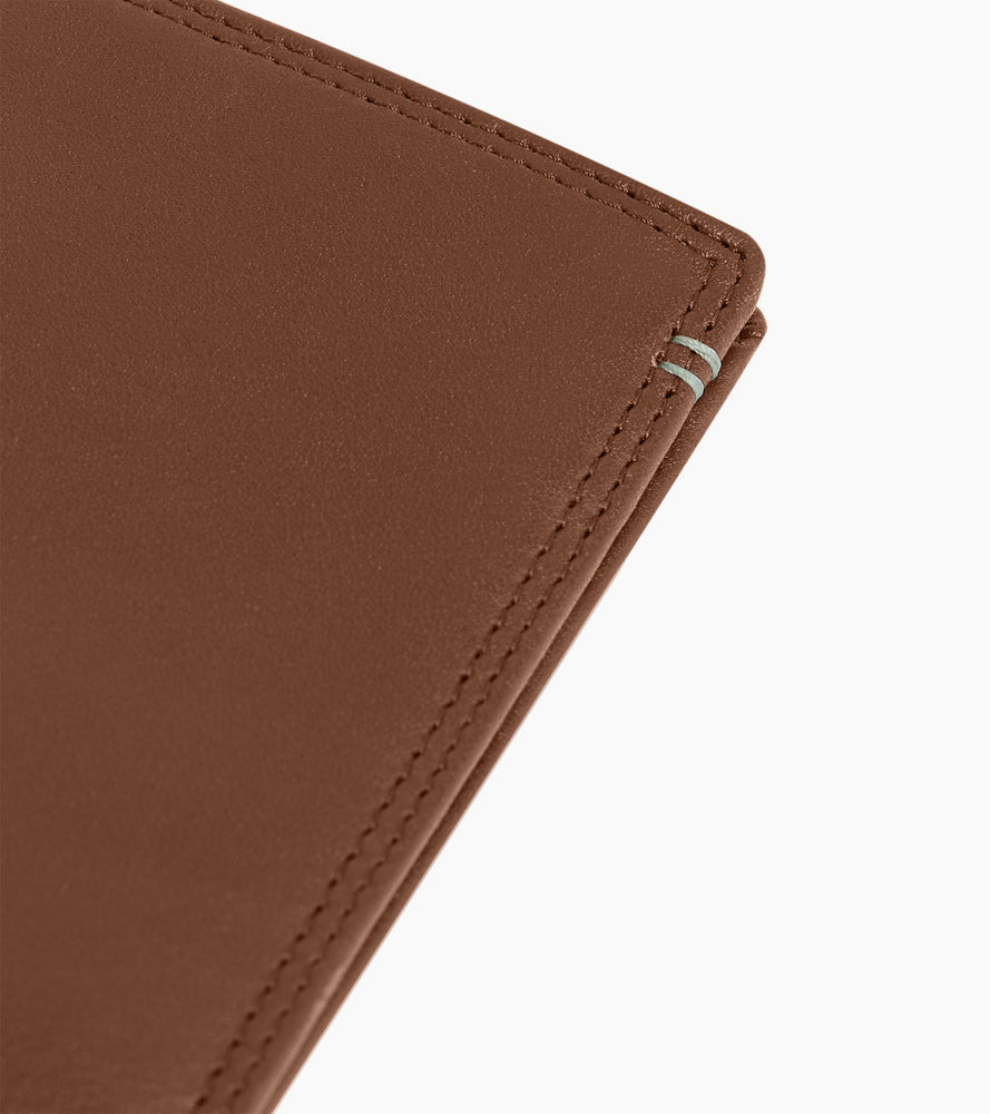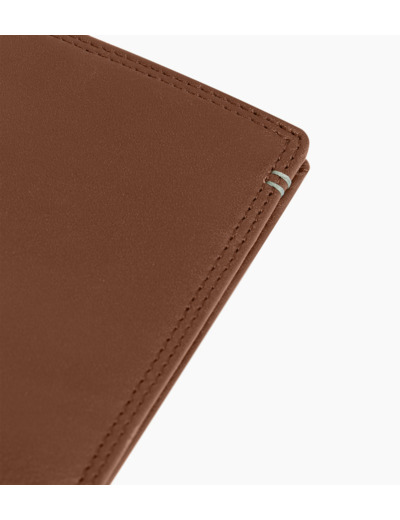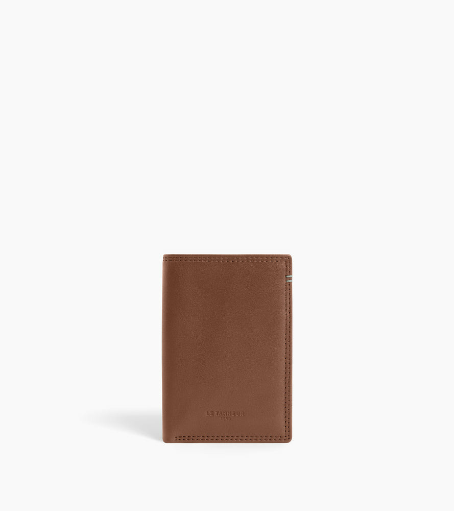 Portefeuille grand format vertical avec marquage Le Tanneur sur film Le Bleu, signature de la Maison. Double point contrasté cousu à la main. Dispose d'une sécurité antiRFID.