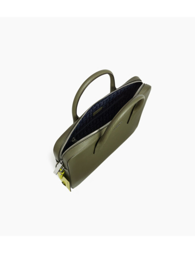 Porte-documents slim 14" finition canon de fusil avec poche ordinateur, passant trolley, charms amovible et marquage Le Tanneur en lettres métal noires. Porté main, épaule ou croisé grâce à sa bandoulière ajustable et amovible.