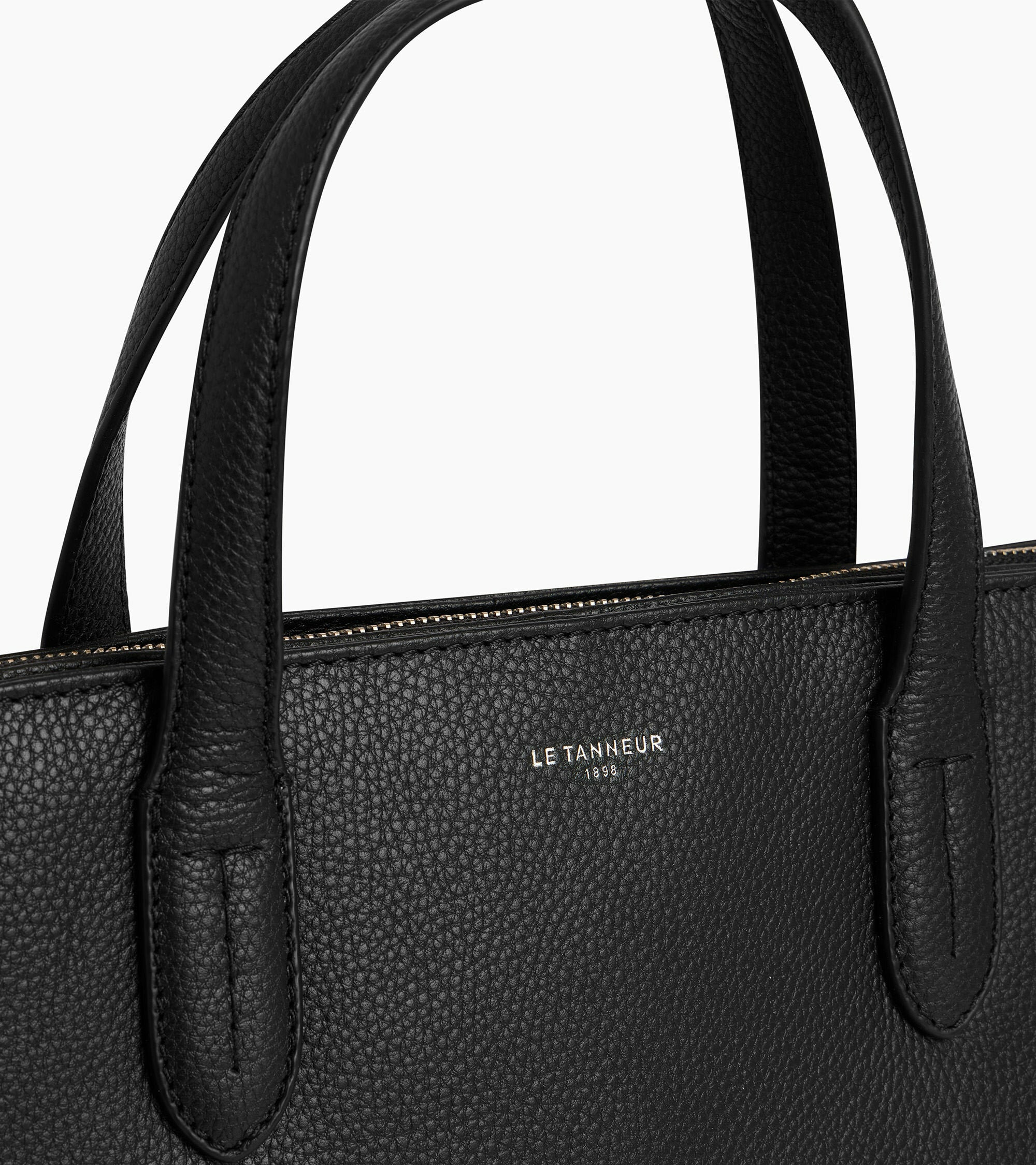 Porte-documents avec poignées ogives piquées en T et marquage Le Tanneur finition argent. Porté main, croisé ou à épaule grâce sa bandoulière ajustable et amovible. Peut accueillir un ordinateur portable 15”.