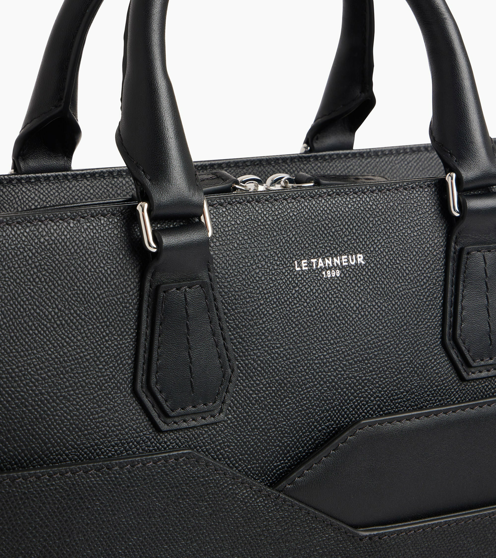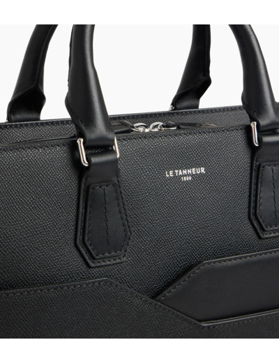 Porte-documents avec poche ordinateur 15. Marquage Le Tanneur et éléments métalliques finition argent. Porté main, épaule ou croisé grâce à sa bandoulière ajustable et amovible."