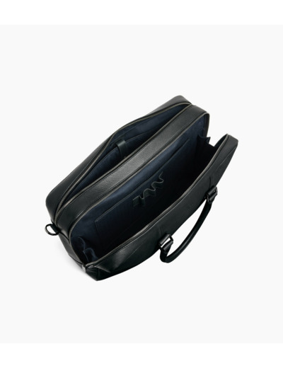 Porte-documents classique avec poche ordinateur 17", bouclerie gravée et marquage Le Tanneur ton sur ton. Doublure 100% coton bleu marine. Porté main, épaule ou croisé grâce à sa bandoulière ajustable et amovible.