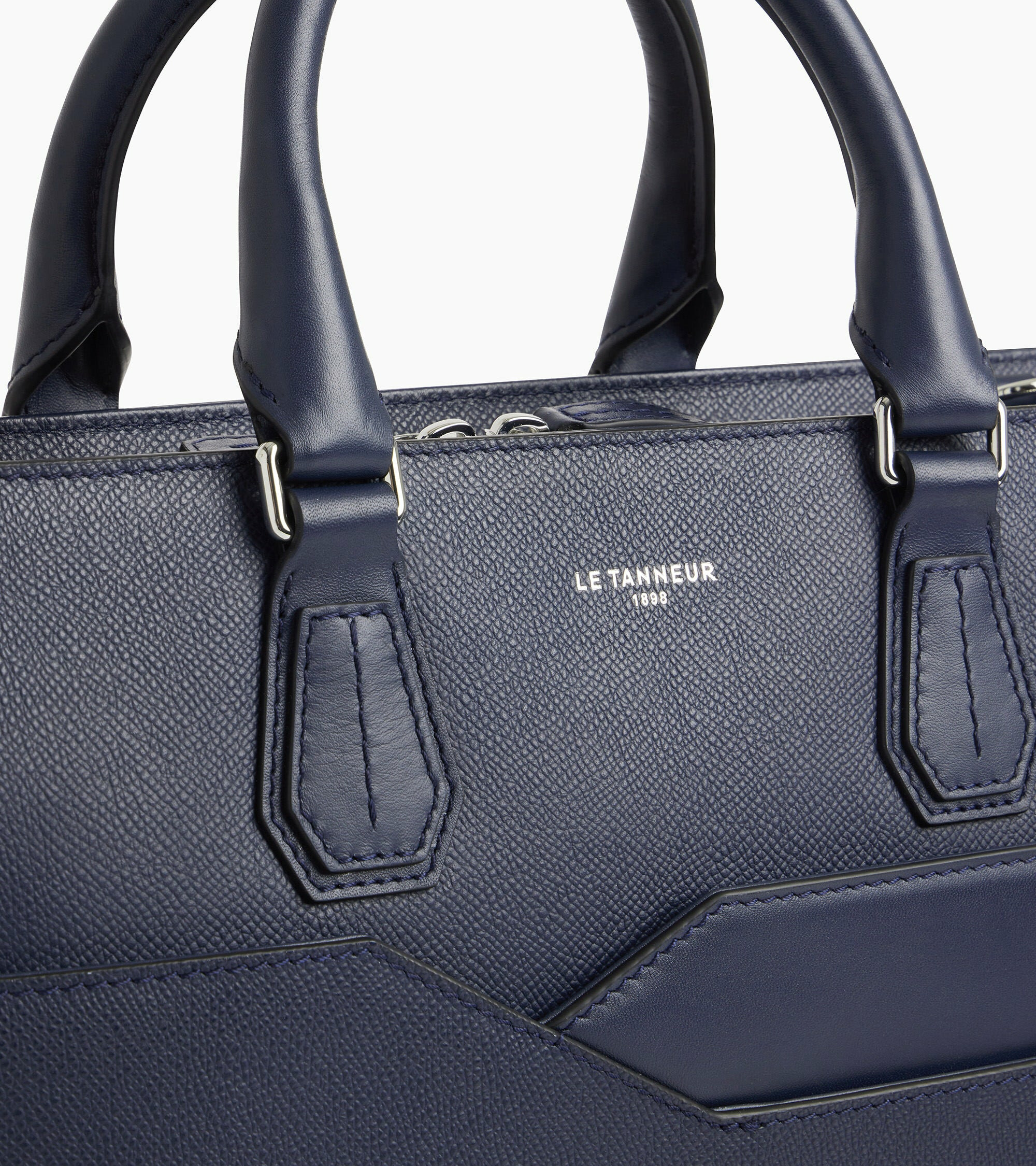 Porte-documents slim avec poche ordinateur 15. Marquage Le Tanneur et éléments métalliques finition argent. Porté main, épaule ou croisé grâce à sa bandoulière ajustable et amovible."