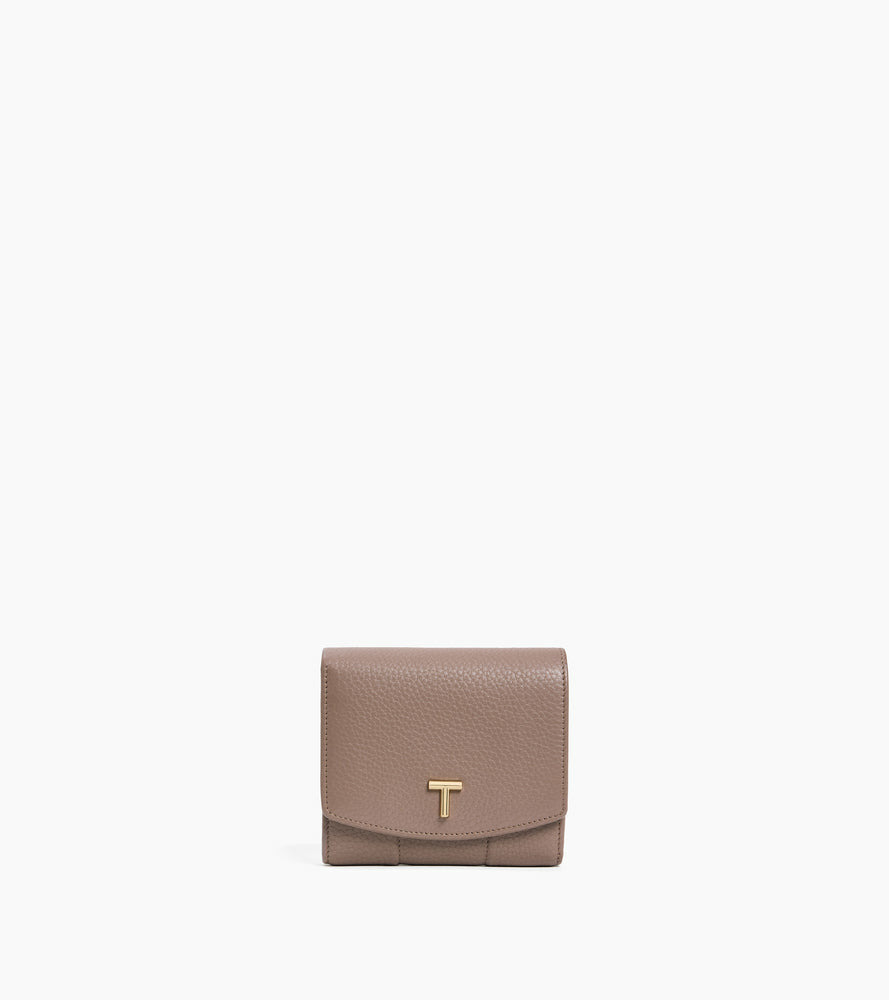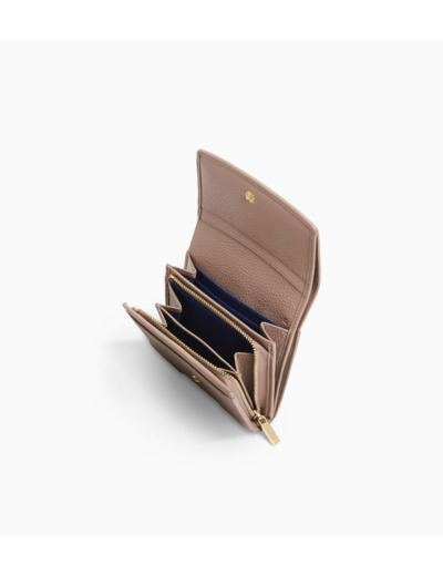 Porte-monnaie à rabat avec poche zippée. Marquage Le Tanneur et fermeture pression finition argent. Sécurité anti-RFID.