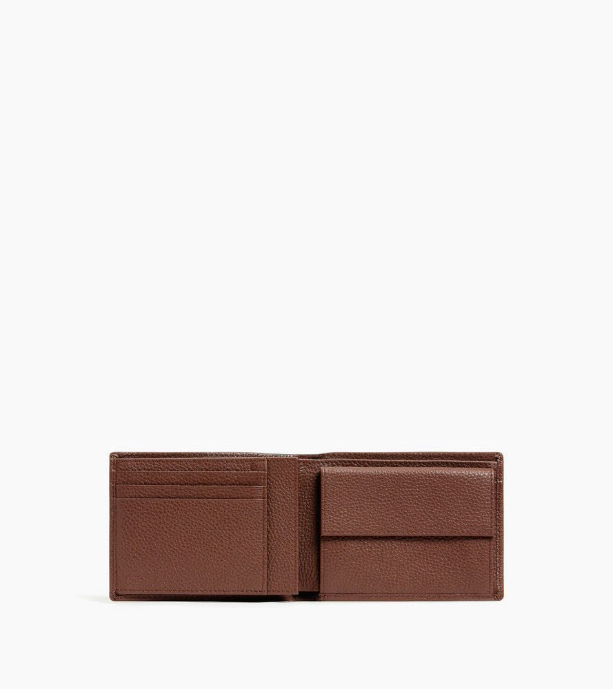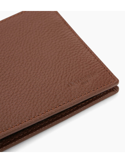 Portefeuille à rabat deux volets avec marquage Le Tanneur ton sur ton et piqûres contrastées.