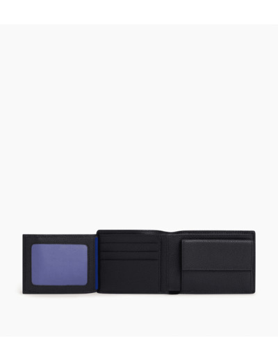 3 poches plates, 1 poche ID, 1 poche monnaie rabat, 2 poches billets et 6 compartiments cartes, 1 poche plate arrière.