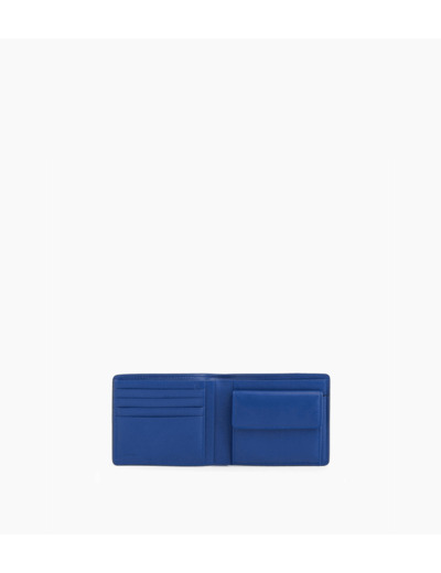 Portefeuille billets modèle horizontal, avec poche monnaie à rabat et liseré bord franc bleu signature. Sécurité anti-RFID.