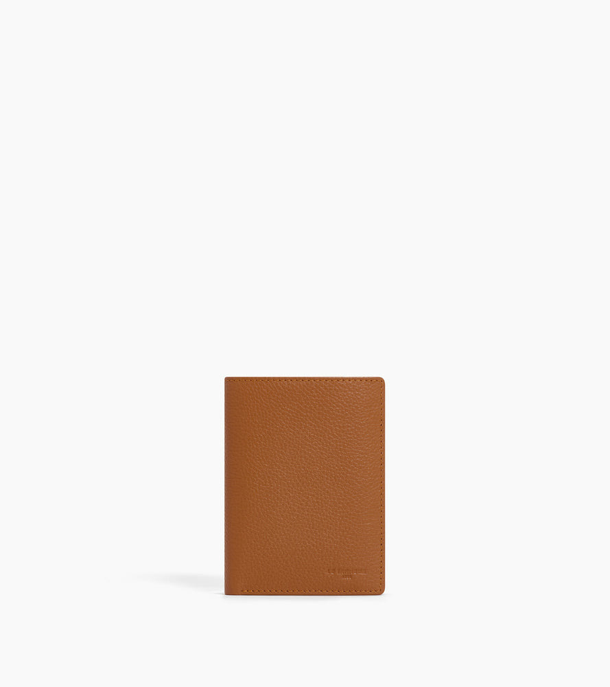 Portefeuille vertical moyen modèle zippé deux volets avec marquage Le Tanneur ton sur ton et piqûres contrastées.