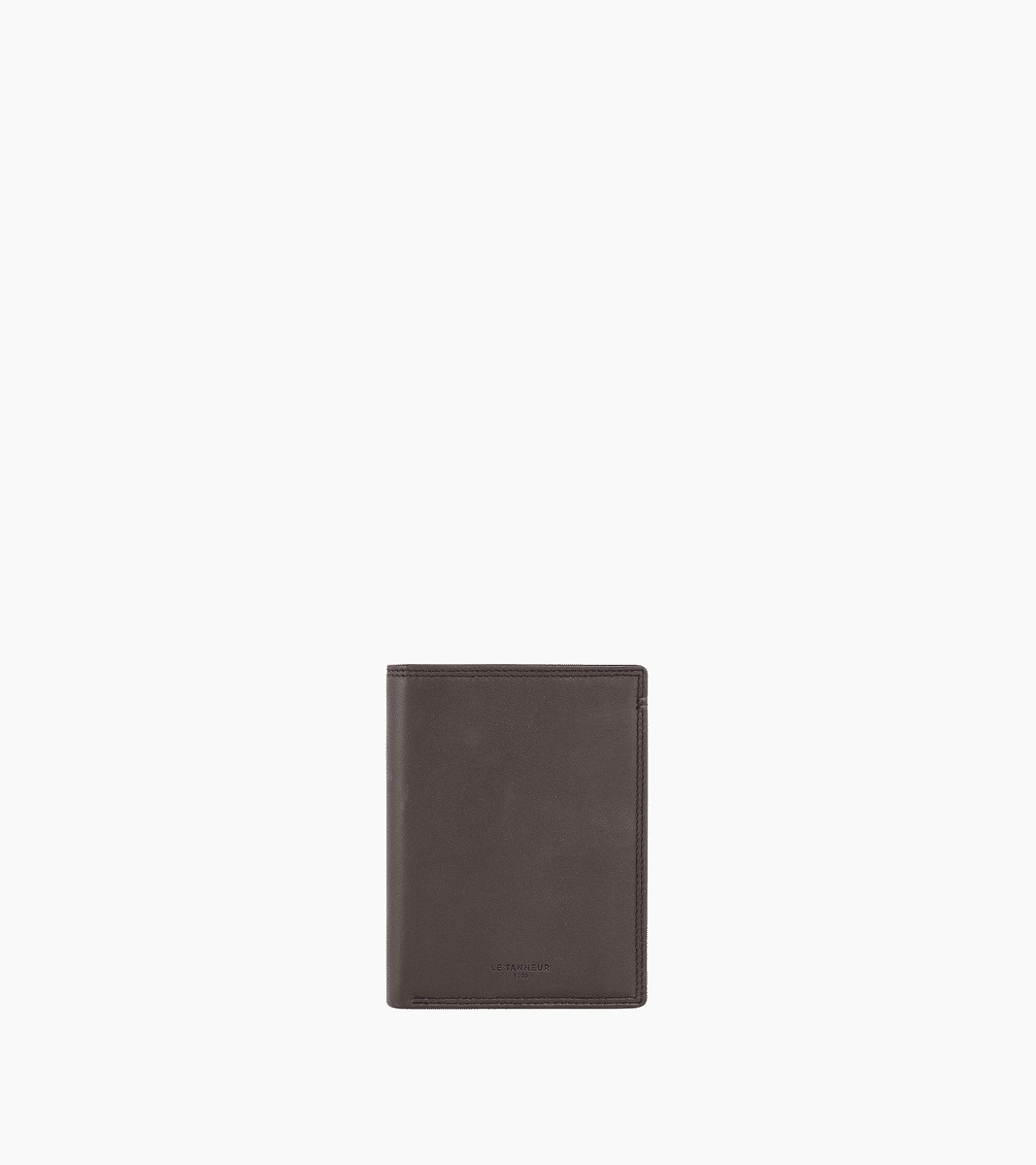Ce portefeuille moyen format vertical arbore un discret marquage Le Tanneur couleur Le Bleu, ainsi qu’un double point du même contraste cousu à la main.