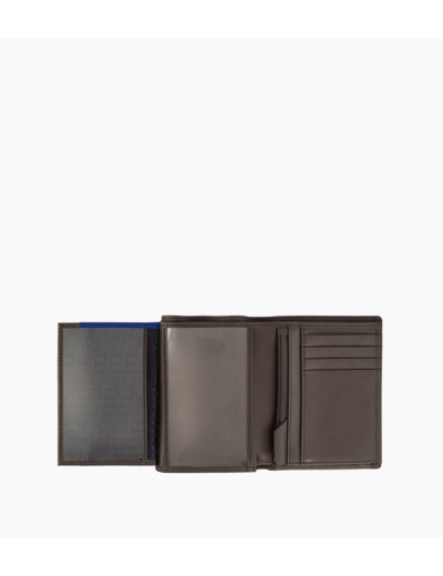 3 poches plates, 2 poches ID, 1 poche monnaie zippée, 1 poche billets et 8 compartiments cartes.