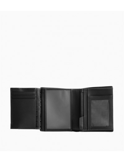 4 poches poches plates, 2 poches ID, 1 poche zippée monnaie, 2 poches billets et 6 compartiments cartes.
