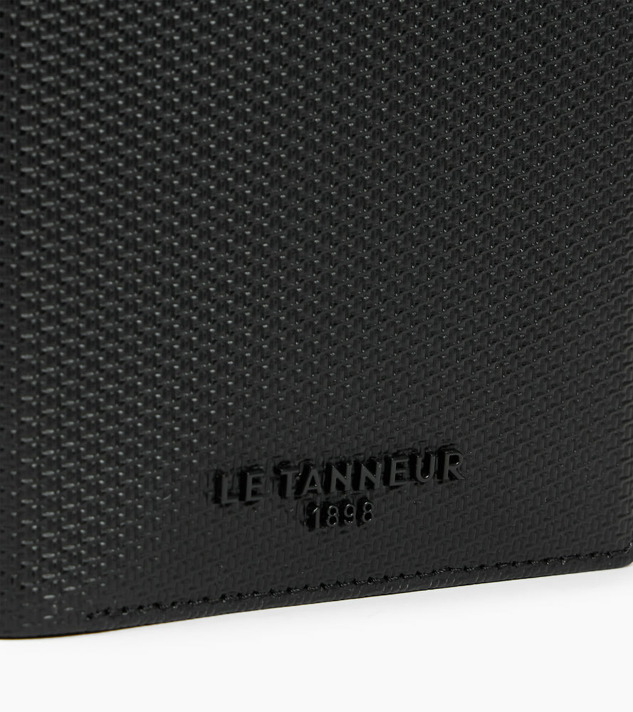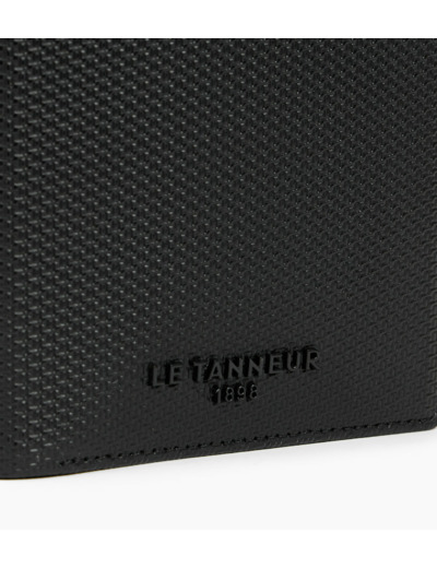 Portefeuille vertical deux volets avec poche monnaie zippée et marquage Le Tanneur. Sécurité anti-RFID.