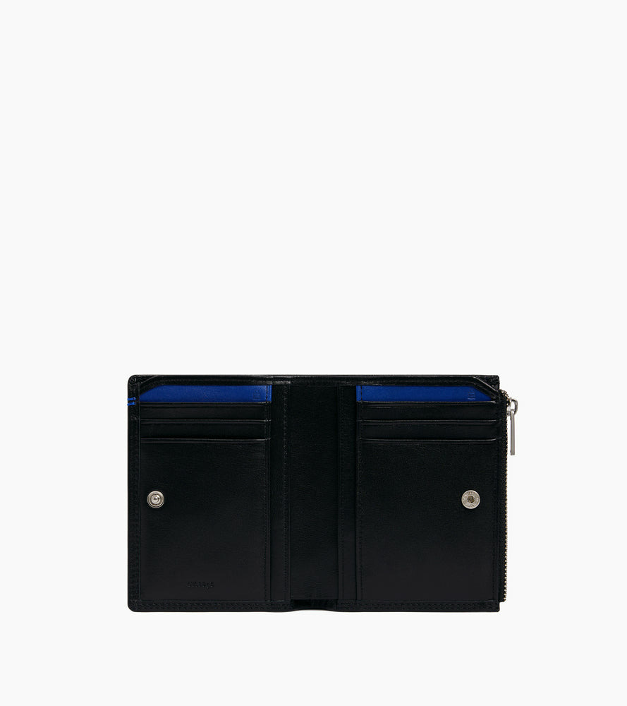 4 poches plates, 1 poche zippée monnaie, 1 poche billets. 6 compartiments cartes.