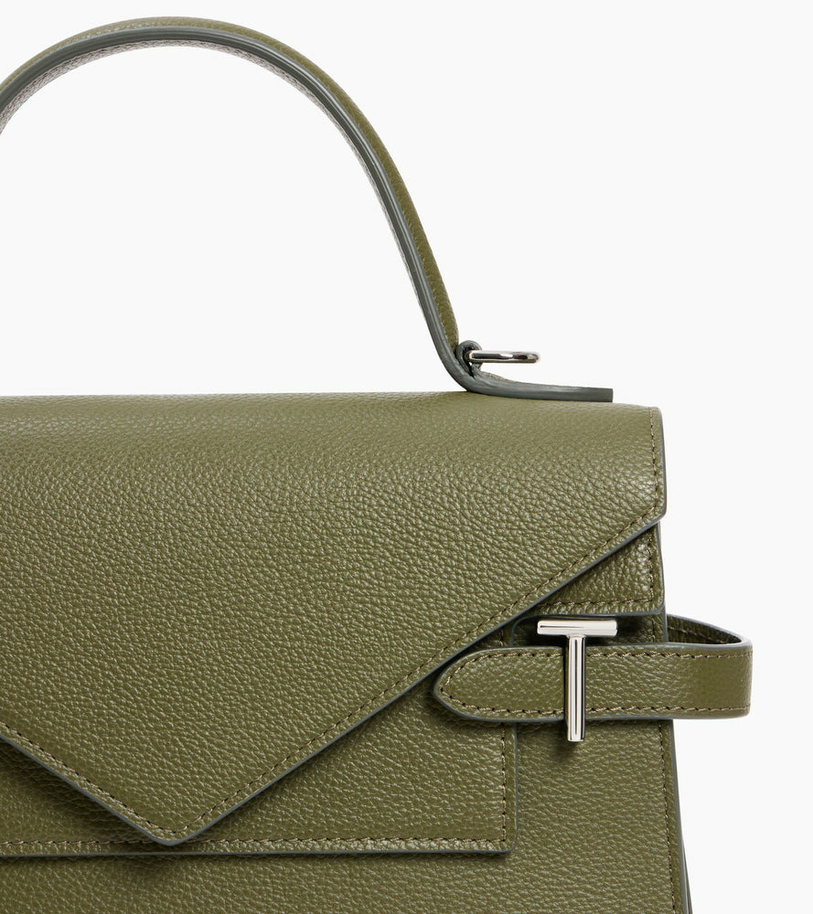 Sac à main moyen modèle avec double rabat, bijouterie T signature et marquage Le Tanneur. Porté main, épaule ou croisé grâce à sa bandoulière ajustable et amovible.