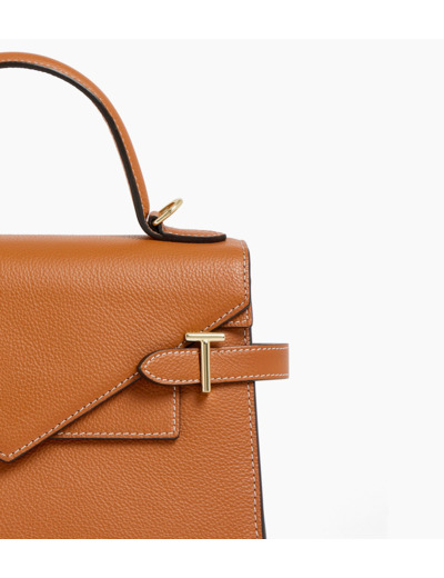 Sac à main moyen modèle avec double rabat, bijouterie T signature et marquage Le Tanneur. Porté main, épaule ou croisé grâce à sa bandoulière ajustable et amovible.