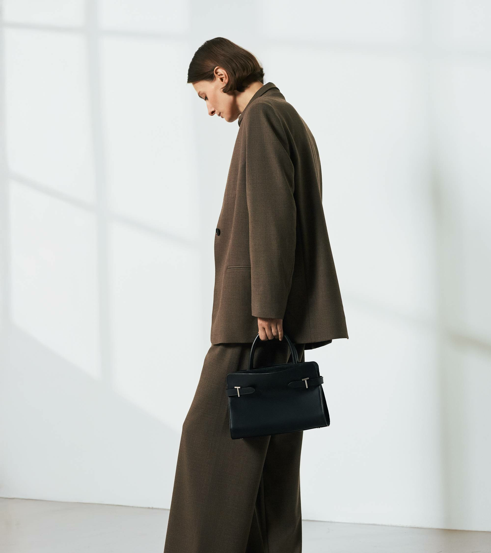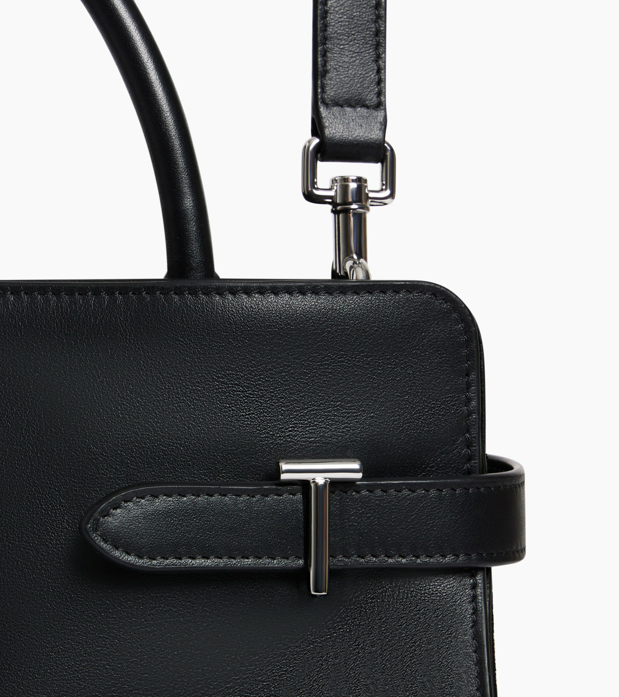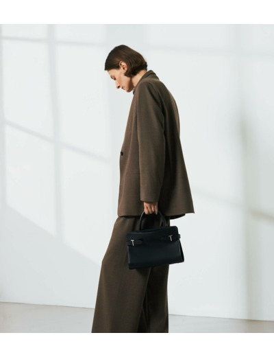Sac à main bi-matière avec fermoirs T signature, poignées toron et logo Le Tanneur embossé ton sur ton. Porté main, épaule ou croisé grâce à sa bandoulière ajustable et amovible.