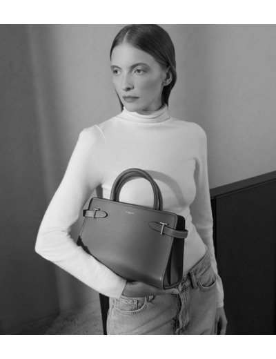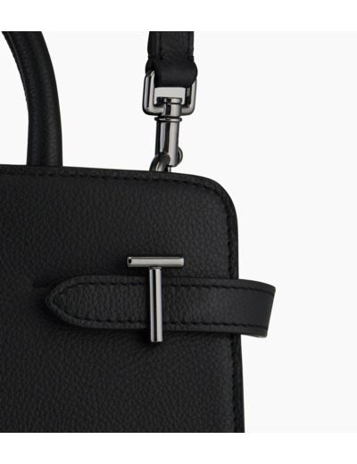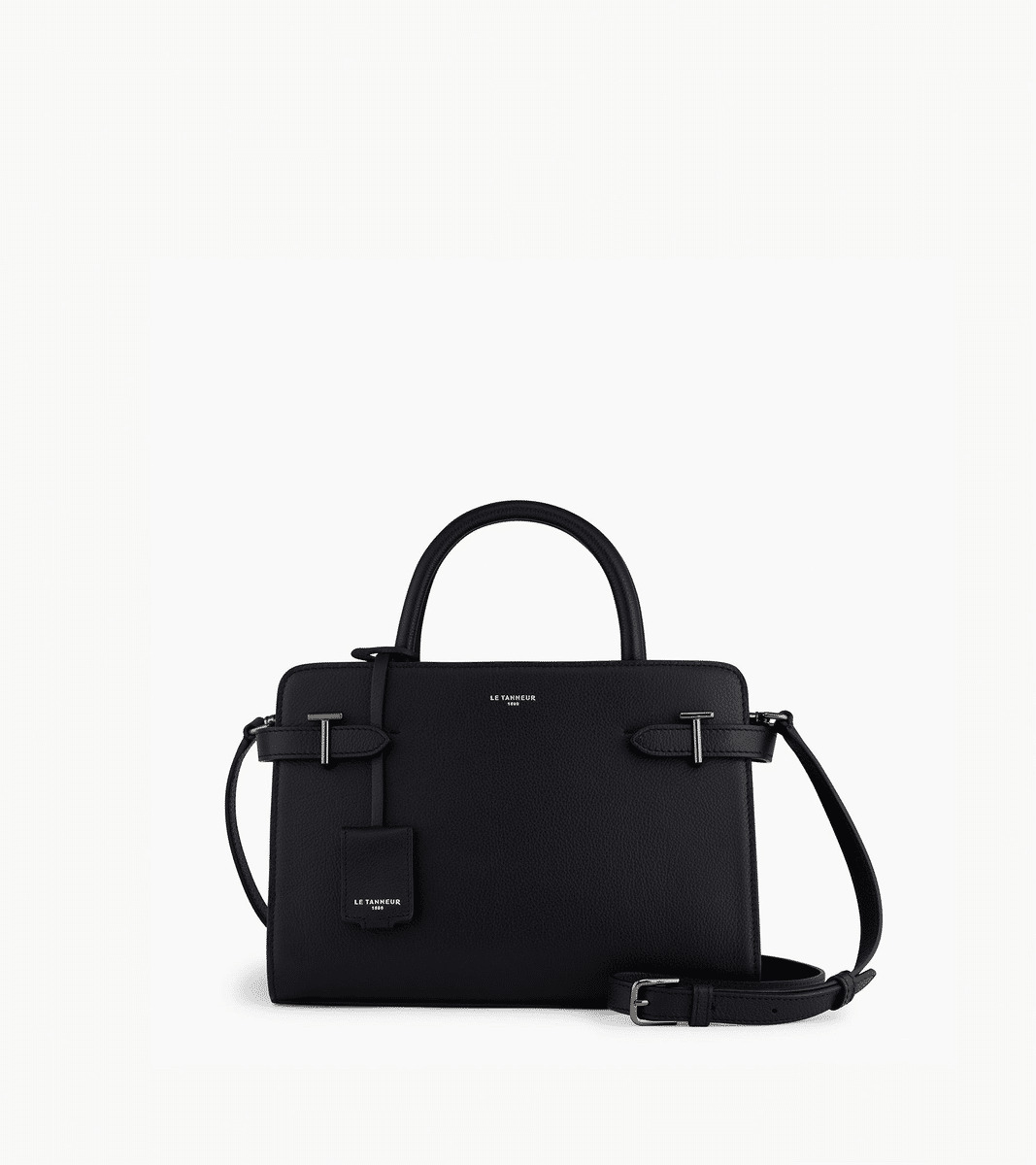 Sac à main moyen modèle avec poignées toron et trois compartiments dont un zippé. Pièces T métalliques signature de la ligne. Charms embossé Le Tanneur amovible. Porté main, épaule ou croisé grâce à sa bandoulière ajustable et amovible.