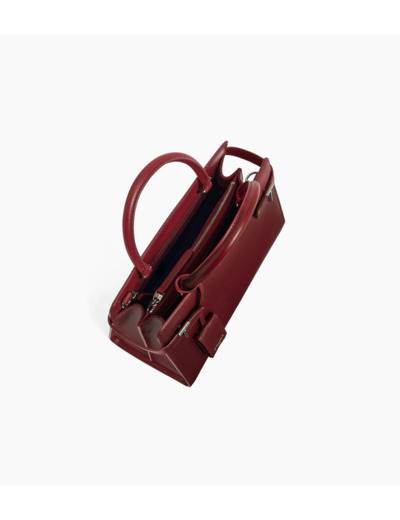 Sac à main moyen modèle rigide arbore les fermoirs T de la Maison. Il dispose de patins de protection et d'un charms amovible. Portez-le à la main, à l'épaule ou croisé grâce à sa bandoulière amovible ajustable.