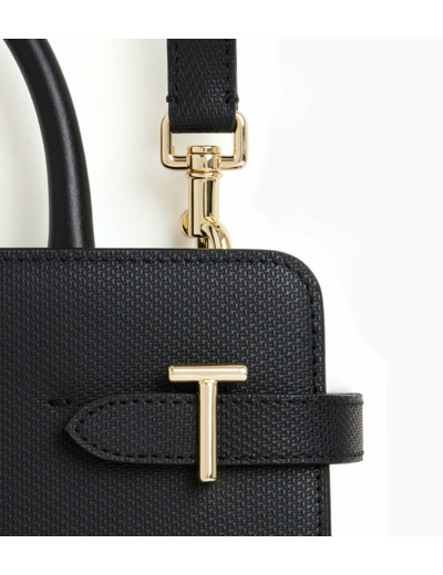 Sac à main moyen modèle rigide arbore les fermoirs T de la Maison. Il dispose de patins de protection et d'un charms amovible. Portez-le à la main, à l'épaule ou croisé grâce à sa bandoulière amovible ajustable.