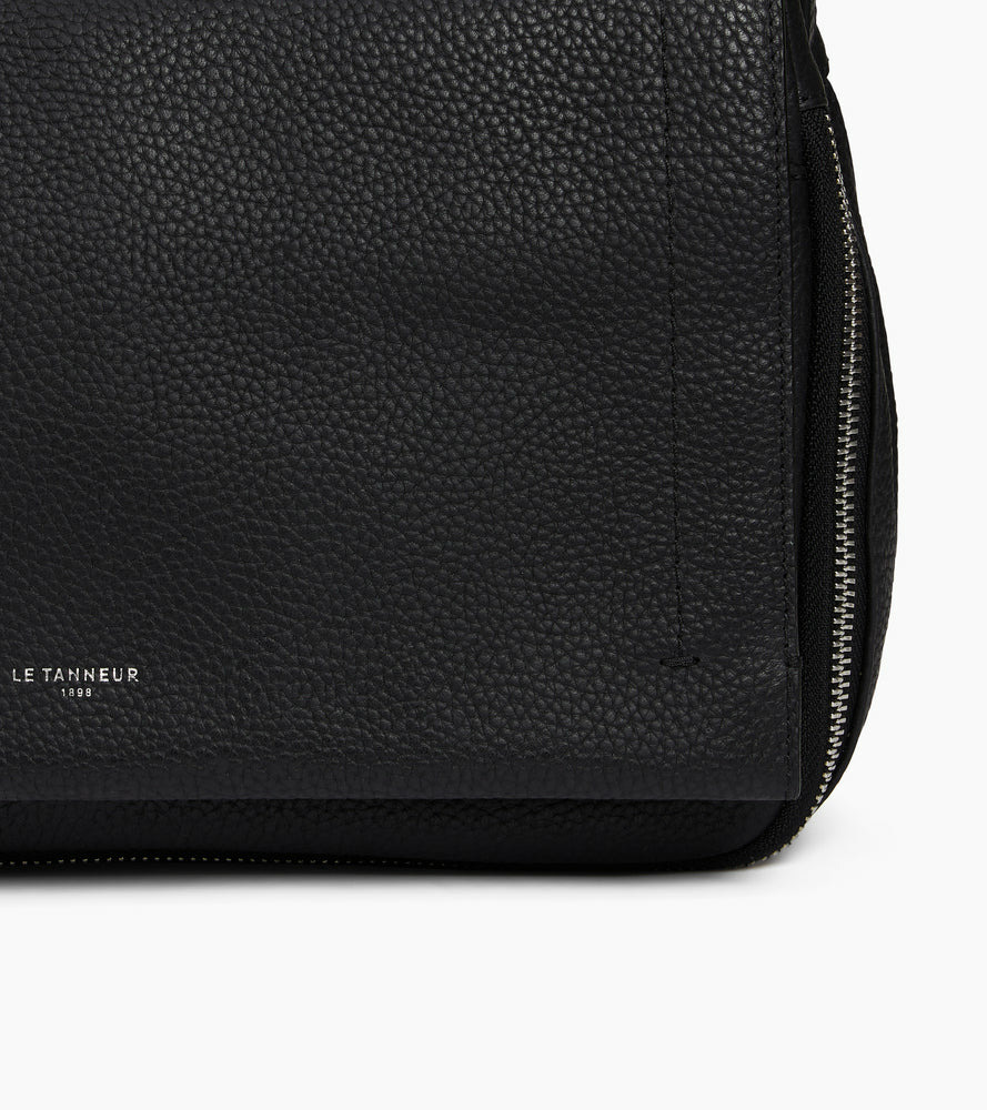 Cuir de vachette pleine fleur grainé. Doublure textile bleu marine