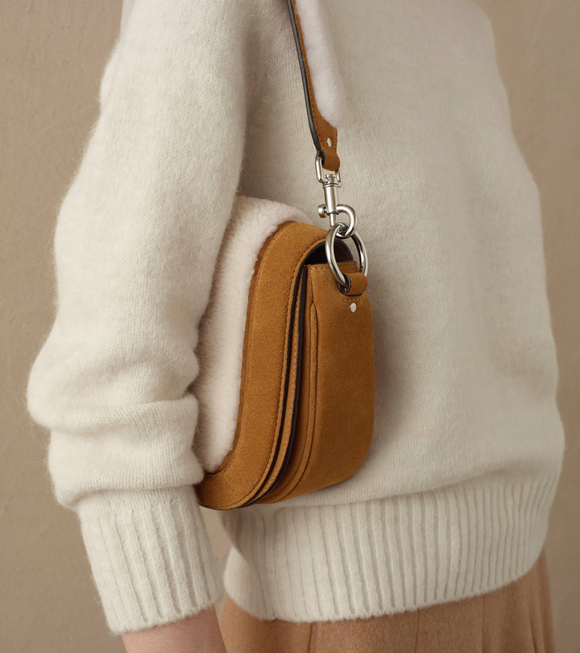 Sac Bandoulière Moyen Modèle Ella En Cuir Suède Et Peau Lainée