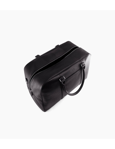 Sac de voyage 48h avec poignées rigides. Bandes ajustées piquées en T, signature de la Maison. Portez-le à la main, à l’épaule ou croisé avec sa bandoulière ajustable amovible.