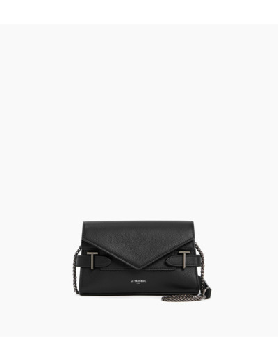 Pochette double rabat marquée Le Tanneur, avec bandoulière chaine et bijouterie T signature. Porté épaule ou croisé.