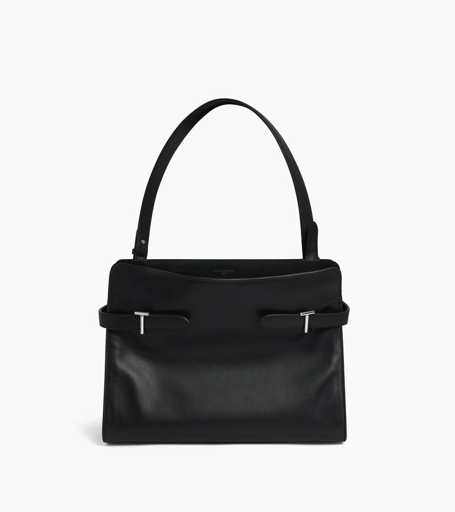 Sac cabas bi-matière grand modèle avec fermoirs T signature et doublure jacquard anniversaire. Marquage Le Tanneur et éléments métalliques finition argent. Porté main, épaule ou croisé grâce à sa bandoulière ajustable et amovible. Seconde anse porté épaule amovible.