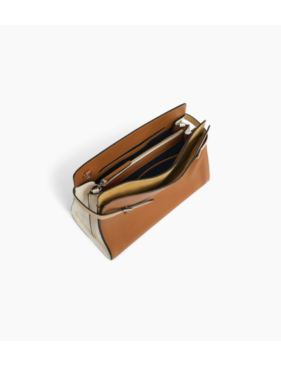 4 compartiments dont 1 zippé. 2 poches plates. 1 poche plate arrière. Bandoulière ajustable et amovible. Anse porté épaule amovible.