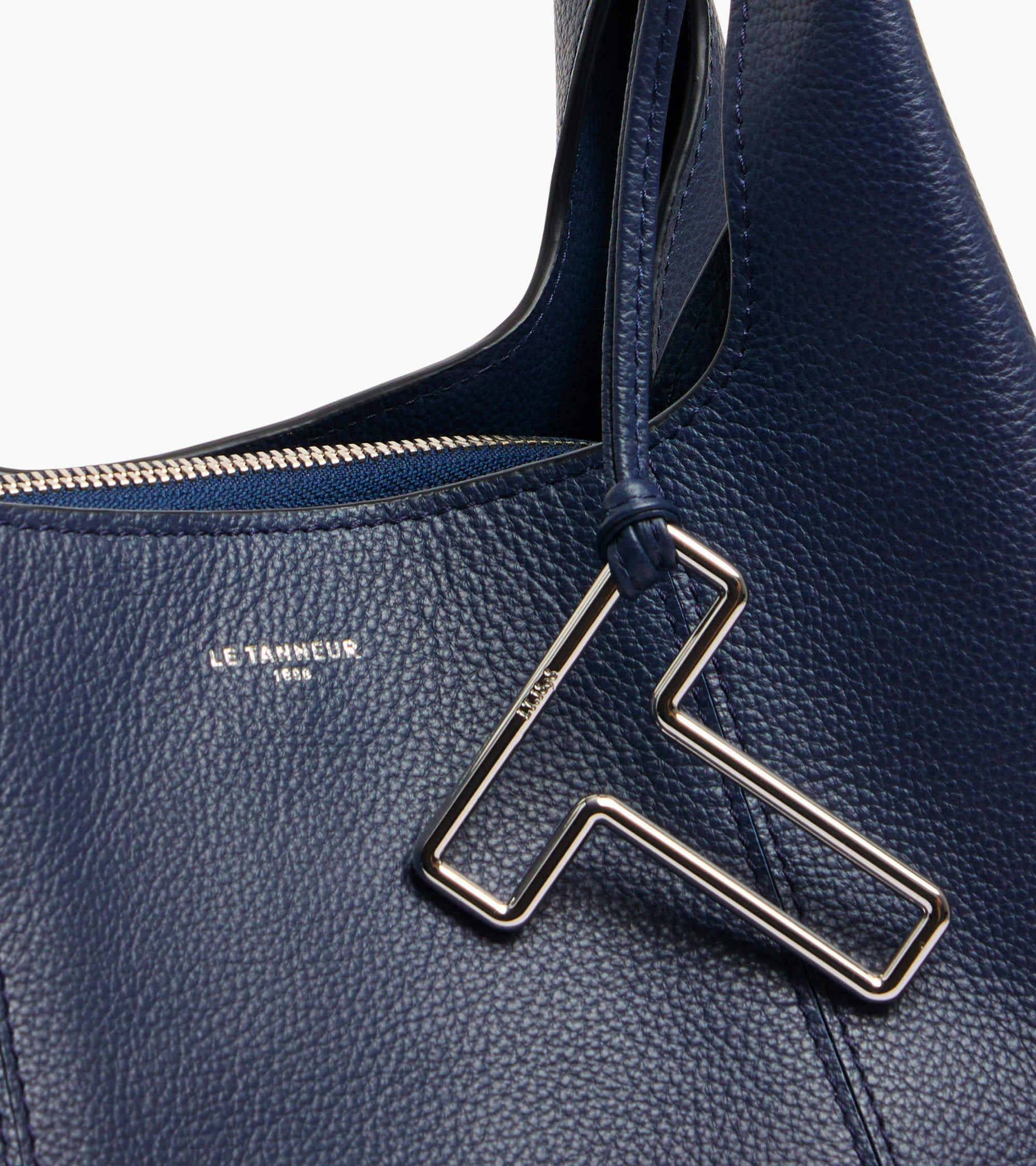Ce sac porté épaule moyen modèle souple, en cuir grainé et aux lignes sans découpe, arbore un charms T finition argent signature de la Maison. Il se porte à la main ou à l'épaule.