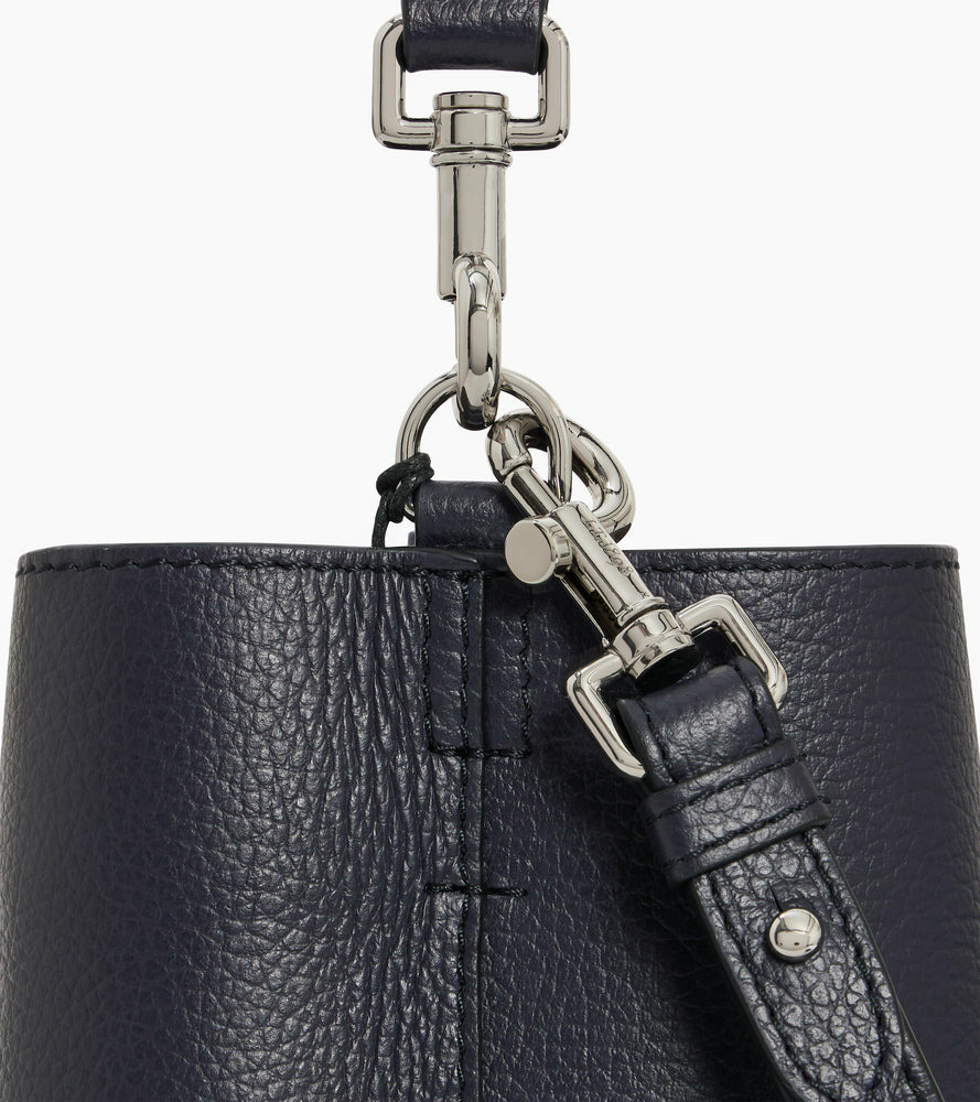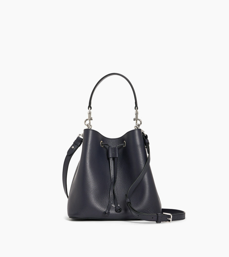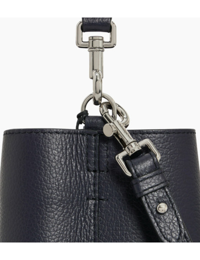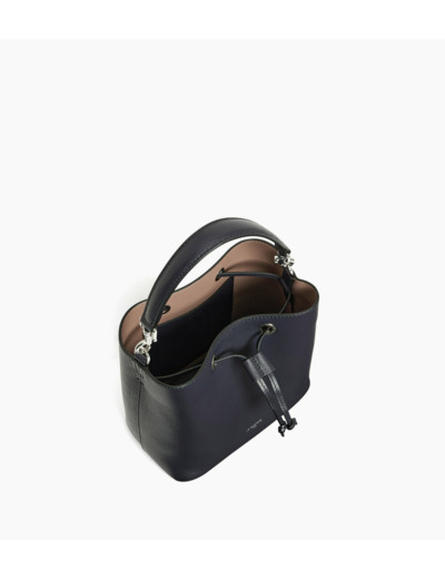 Sac seau avec ornement en cuir et marquage Le Tanneur. Porté main, épaule ou croisé grâce à sa bandoulière ajustable et amovible.