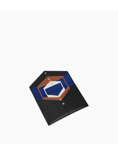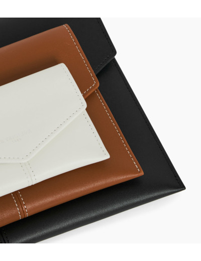 Trio d'enveloppes avec poche plate au dos et marquage Le Tanneur finition argent. Dispose d'une protection RFID.