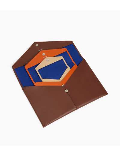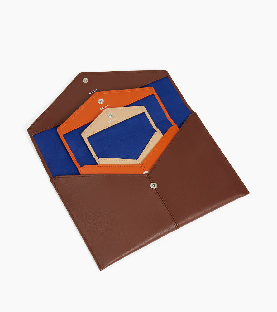 Trio d'enveloppes avec poche plate au dos et marquage Le Tanneur finition argent. Dispose d'une protection RFID.