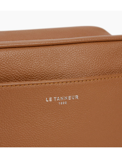 Cuir de vachette pleine fleur grainé. Doublure coton bleu marine