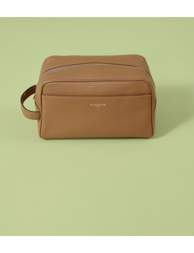 Trousse de toilette zippée avec marquage et bouclerie finition argent. Doublure : 100% coton Crépuscule.