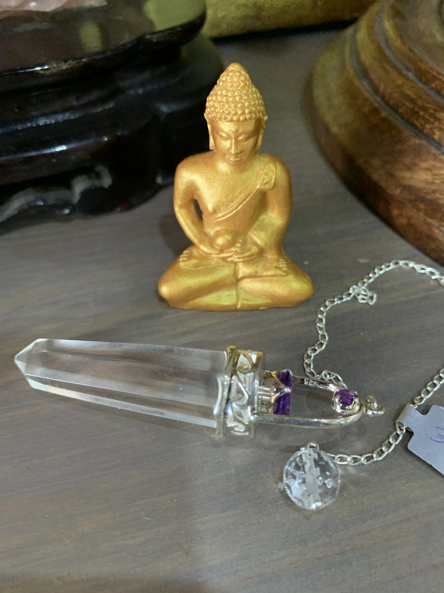 Pendule en cristal de roche et améthyste