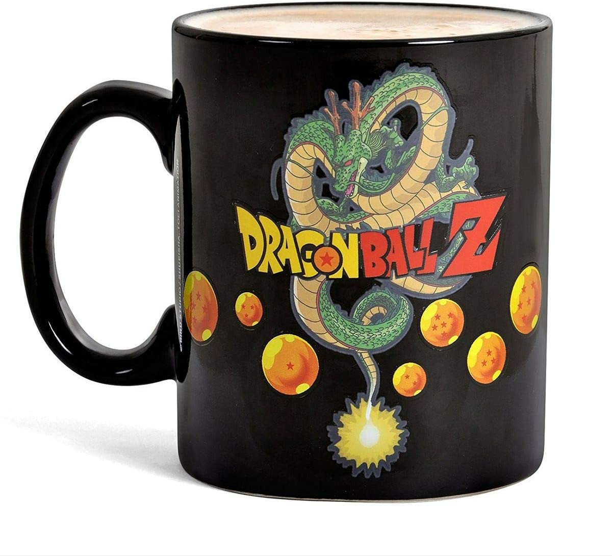 Mug thermo-réactif Dragon Ball, en céramique, 460 ml représentant Vegeta et le dragon Shenron. Change d’aspect quand on y verse un liquide chaud.