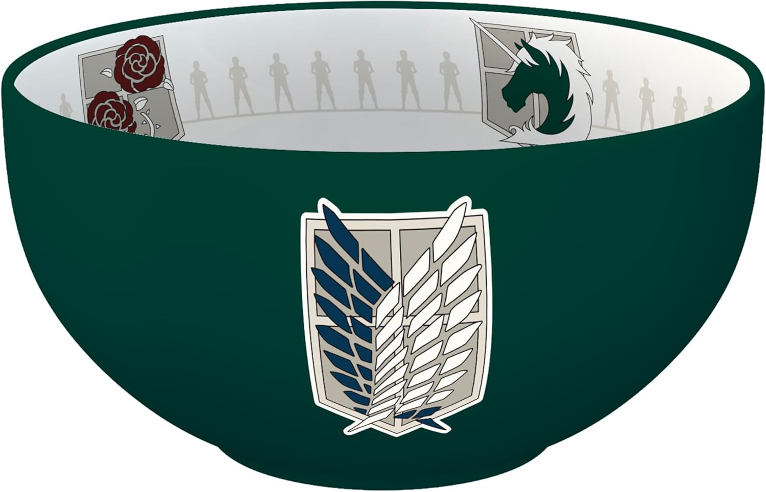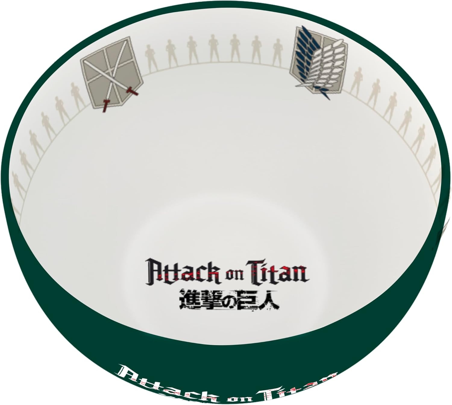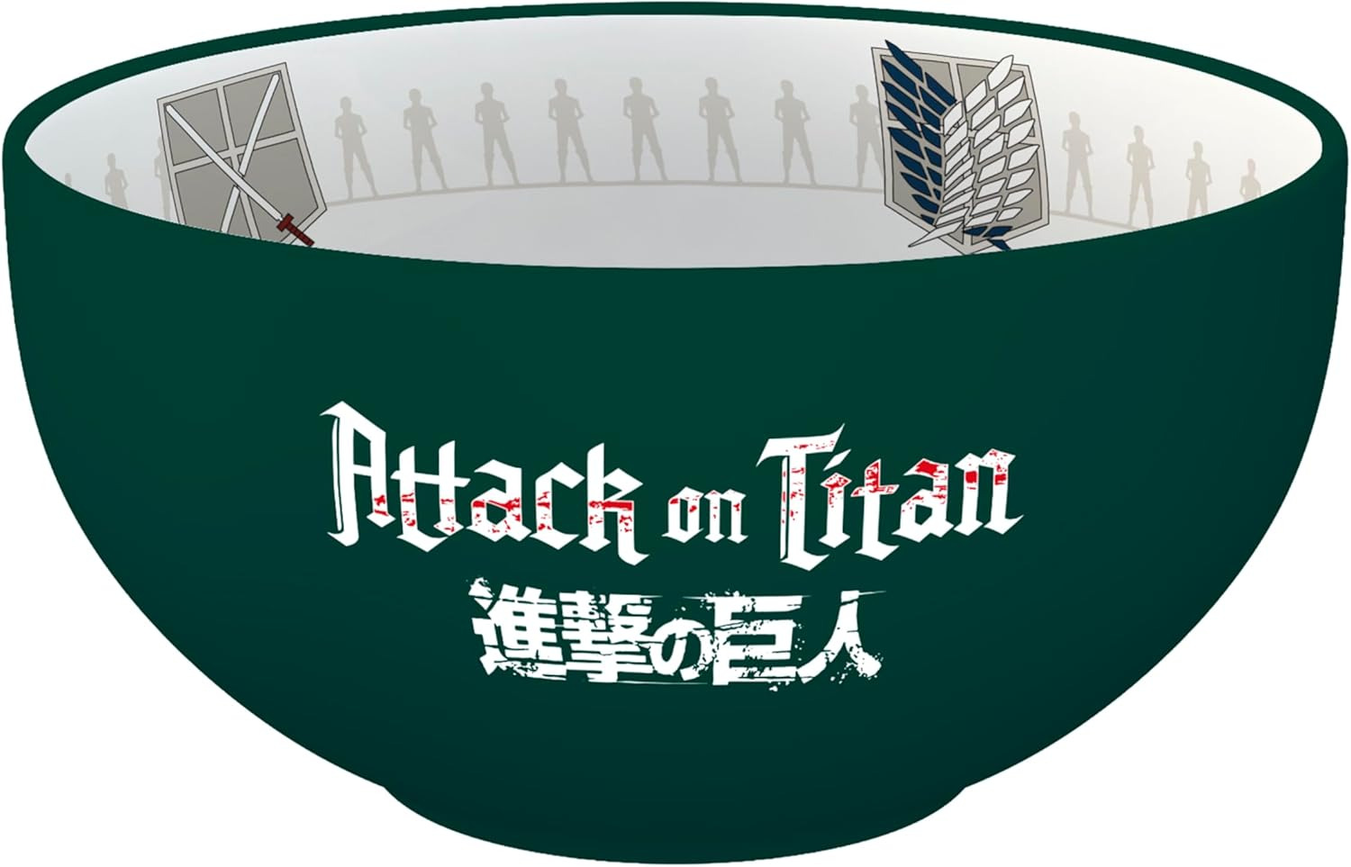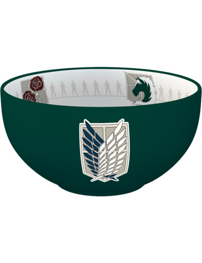 La lutte contre les Titans ne sera pas de tout repos, un bon petit-déjeuner sera nécessaire afin de tous les vaincre ! Montrez votre soutien aux membres de la Garnison, des Brigades Spéciales et du Bataillon d'Exploration avec ce bol L'Attaque des Titans