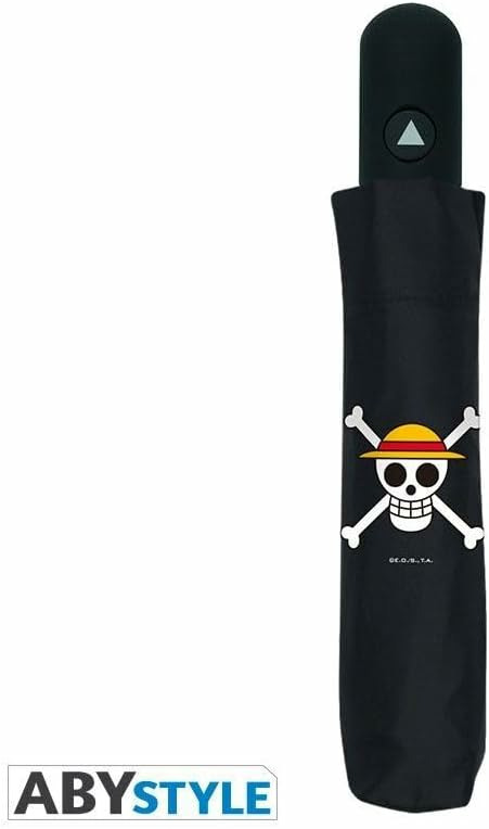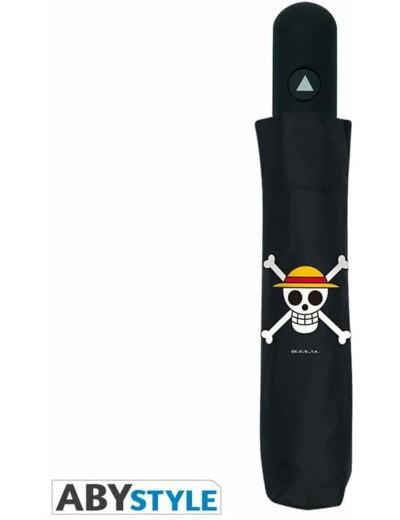 Pour vos longs voyages de pirates en mer par temps pluvieux, ABYstyle a pensé à vous et vous propose ce parapluie One Piece représentant les emblèmes de différents équipages emblématiques de la série. @@- Matière : 100% polyester @- Emballage brochable, adapté à la mise en rayon @- Dimensions : environ 96 cm de diamètre ouvert, environ H. 30 cm x L. 6 cm replié @- Poignée en caoutchouc avec système d'ouverture automatique en pressant sur un bouton