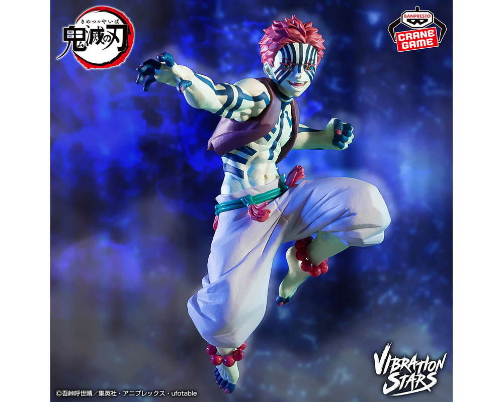 Cette figurine de Akaza provient de la gamme Vibration Stars. Ce membre des Douze Lunes Démoniaques s'offre une position dynamique prêt à en découdre! Les détails de sa musculature et de ses marques démoniaques, brossent un portrait fidèle du personnage. Editée par Bandai, cette figurine pourra s'associer à votre collection Demon Slayer.