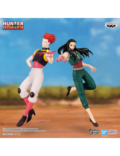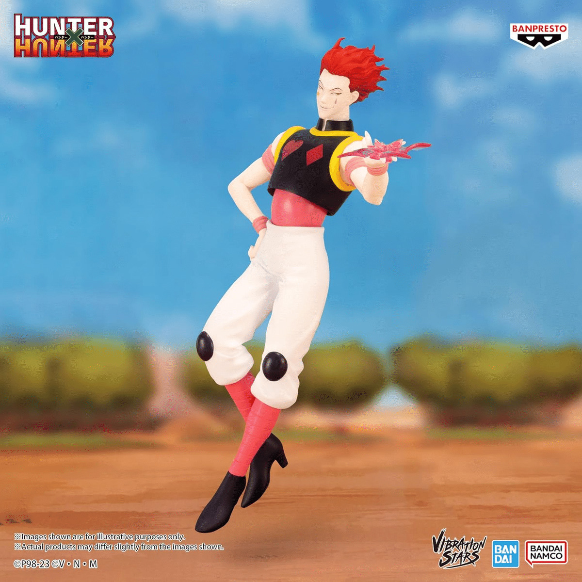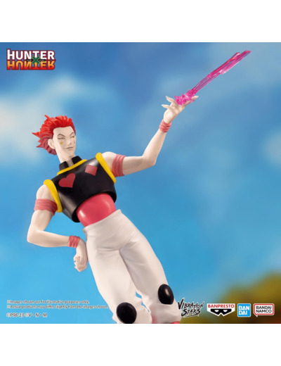 Nous voici avec une sympathique Figurine d'Hisoka, du célèbre Univers et Manga Hunter × Hunter, dans la Gamme Vibration Stars. Retrouvez Hisoka dans une posture dynamique, comme s'il effectuait un petit bond en arrière, utilisant ses capacités pour vaincre son adversaire. Hisoka affiche ici une expression faciale inquiétante, intimidante, qui colle parfaitement avec son caractère. A quel mauvais plan est-il encore en train de penser ?