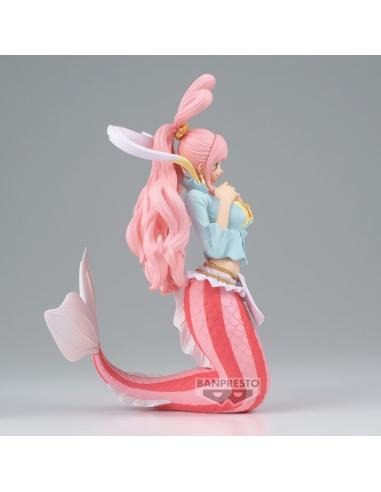 Ce qui frappe en premier, c'est la posture élégante de Shirahoshi. Ses longues nageoires roses se courbent gracieusement derrière elle, évoquant une fluidité naturelle et une aisance aquatique. Ses mains délicates posées près de son cœur ajoutent une touche de douceur et de vulnérabilité, rendant hommage à sa nature douce et timide.
