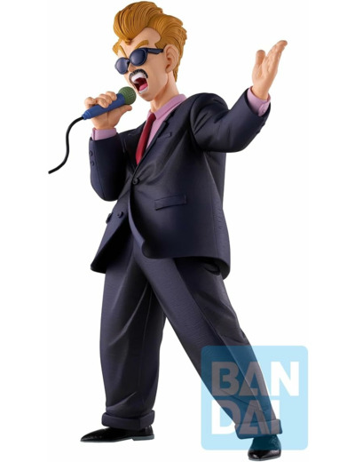 figurine de 22 cm, lui donnant une allure dynamique, communicative et débordante d'énergie. Il se casse la voix dans son costume parfaitement réalisée par une sculpture de qualité. Bien que son regard soit dissimulé par ses lunettes de soleil, on remarque toute sa passion et son énergie à travers l'expression de sa bouche et de ses sourcils. Rares sont les figurines de ce personnage, c'est l'occasion parfaite pour l'ajouter à votre collection Dragon Ball.