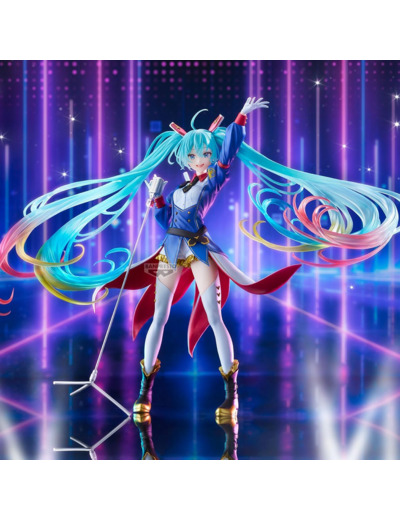La figurine mesure environ 21 cm de hauteur, capturant parfaitement la pose emblématique de Hatsune Miku. Grâce à la nouvelle ligne Banpresto Evolve, cette figurine se distingue par ses détails impressionnants et ses finitions soignées qui raviront les collectionneurs.