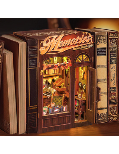Le kit DIY **Book Nook Memories Music Bookshop** vous invite à vivre une expérience créative unique, où la **musique** et la **littérature** se rencontrent. Avec ses 136 pièces en contreplaqué finement découpées, ce modèle vous permet de construire une petite librairie musicale qui respire la **nostalgie** et le **charme**.