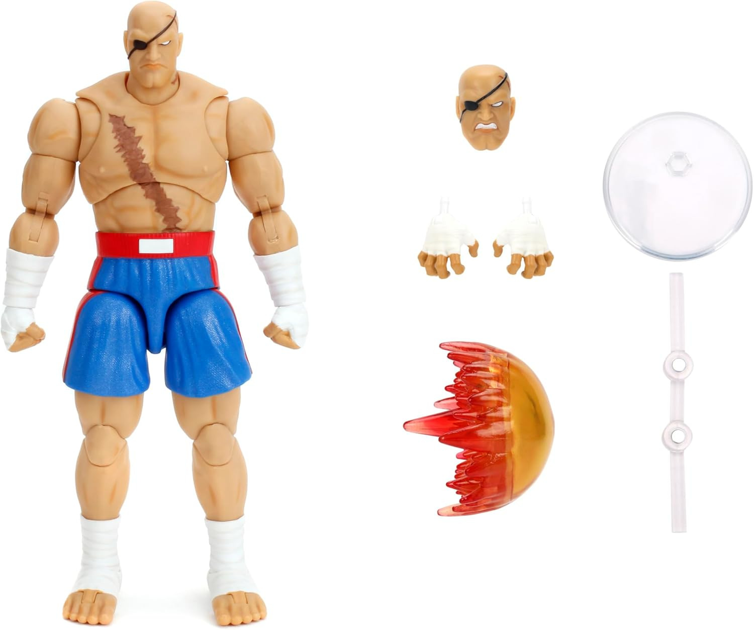 Découvrez la figurine Sagat de la célèbre série de jeux Street Fighter II, produite par Jada Toys. Ce modèle d'action captivant mesure 15 cm et se distingue par une précision impressionnante, magnifiant l'un des personnages les plus emblématiques du jeu.