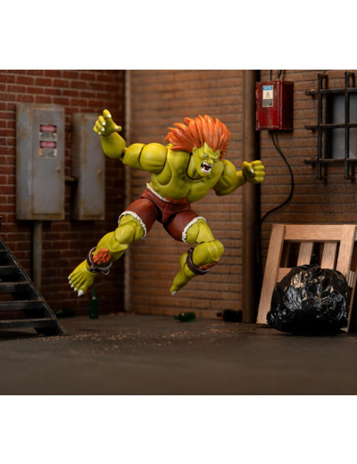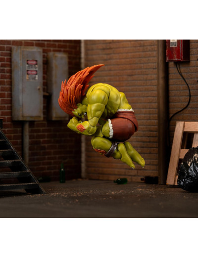 Revivez les moments marquants du jeu avec Blanka, la force de la jungle. Sa vitesse surhumaine et son style de combat animal sont fidèlement représentés dans cette figurine qui capture parfaitement sa peau verte, ses cheveux orange enflammés et sa stature musclée. Grâce aux mains et têtes interchangeables, vous pouvez facilement changer la pose de Blanka pour représenter directement ses attaques iconiques, comme l’ELECTRIC THUNDER ATTACK.