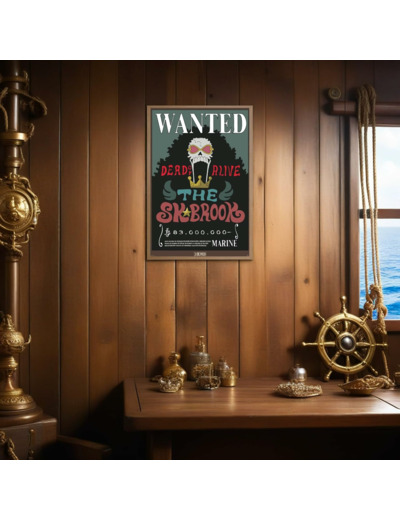 Le journal vient de tomber la nouvelle prime de Brook est là ! Après ses exploits dans le Nouveau Monde (même s'il n'a pas de yeux YOHOHO), Soul King de son surnom, possède désormais une prime extraordinaire à 83 000 000 de berries sur ce poster Wanted One Piece